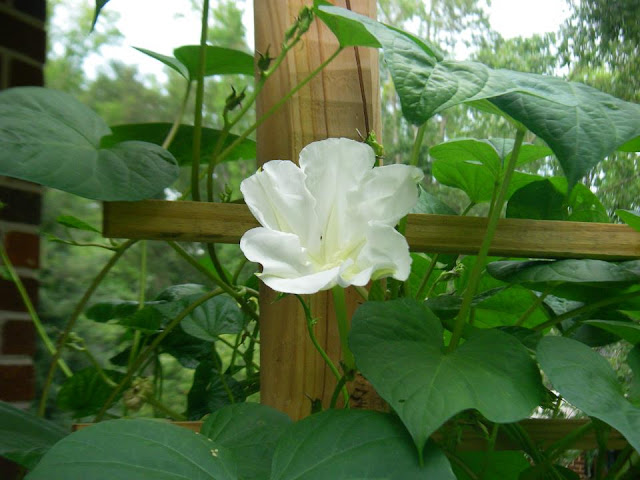 Here is one of our moonflower buds...they only bloom at night! Moonflowers are really evening glories or the opposite of morning glories which bloom in the morning.